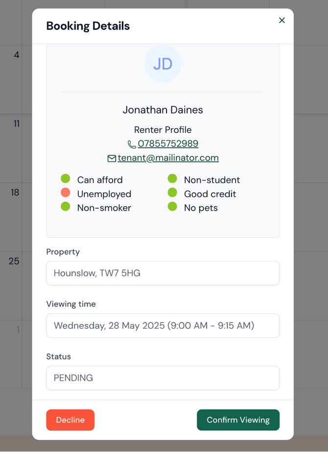 The Viewings Module helps landlords manage property viewings with tenants — from setting your availability to collecting feedback once viewings have taken place.